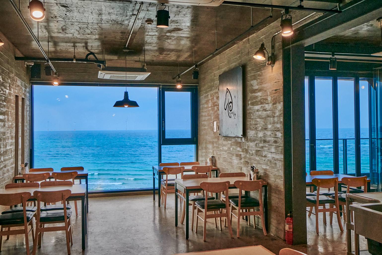 전문 식당으로, 통유리 너머로 에메랄드빛